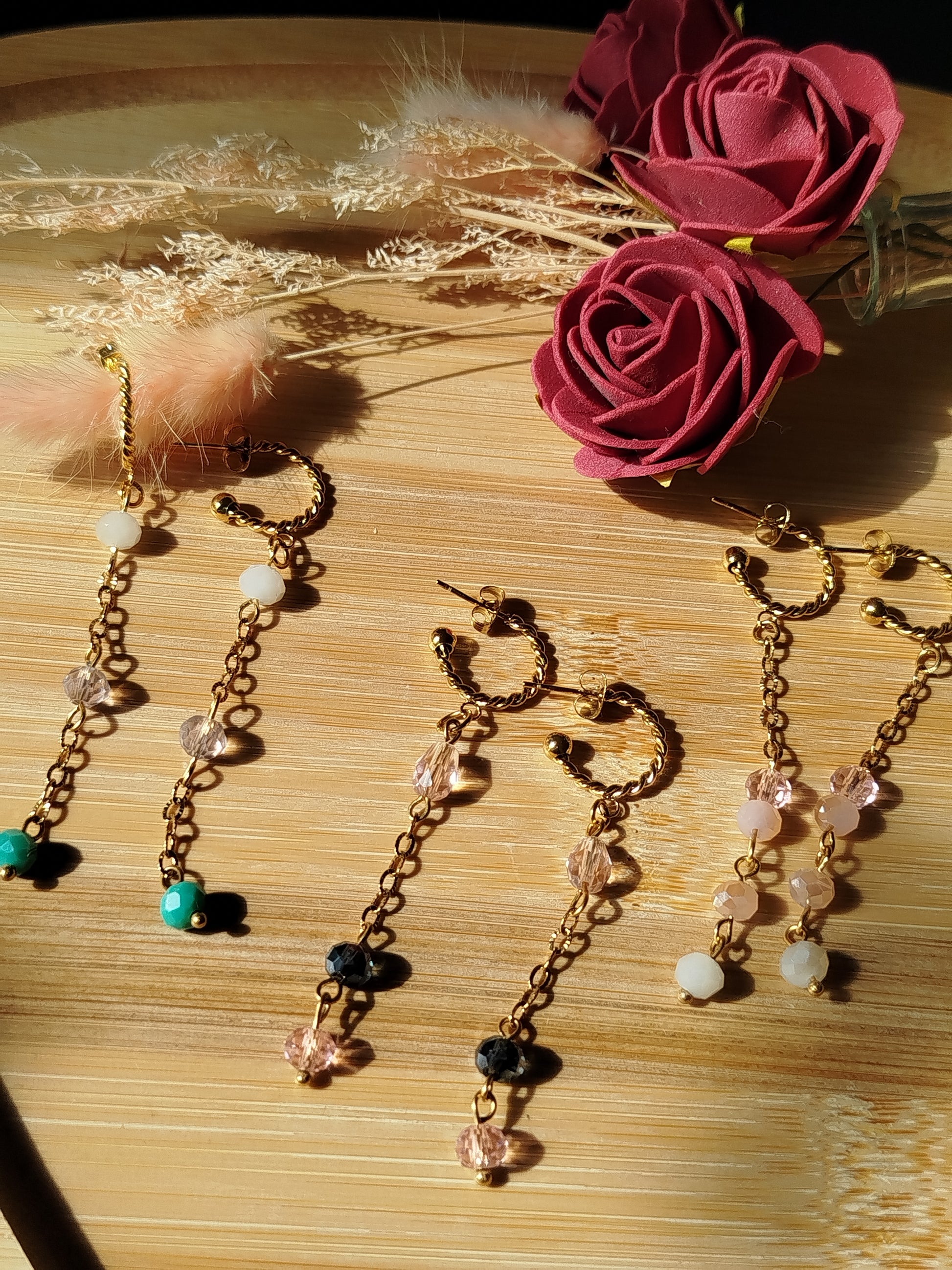 Ces petits créoles "Elsa" en acier inoxydable doré ou argenté sont ornés de perles facettes colorées. Leur design élégant et moderne est parfait pour toutes les occasions. Faciles à porter avec n'importe quelle tenue, ces créoles sont un accessoire incontournable pour une touche de glamour.